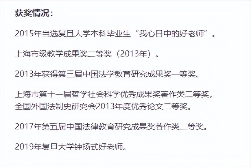 他在教学上成果丰硕,2013年他获得上海市级教学成果奖二等奖和第三届中国法学教育研究成果奖一等奖。